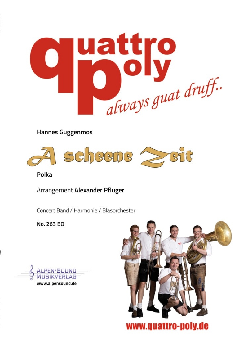 A scheene Zeit - Hannes Guggenmos, Trompeter von QUATTRO POLY komponierte diese farbenfrohe Polka für das gleichnamige Ensemble. Alexander Pfluger erstellte das Arrangement für Blasorchester.