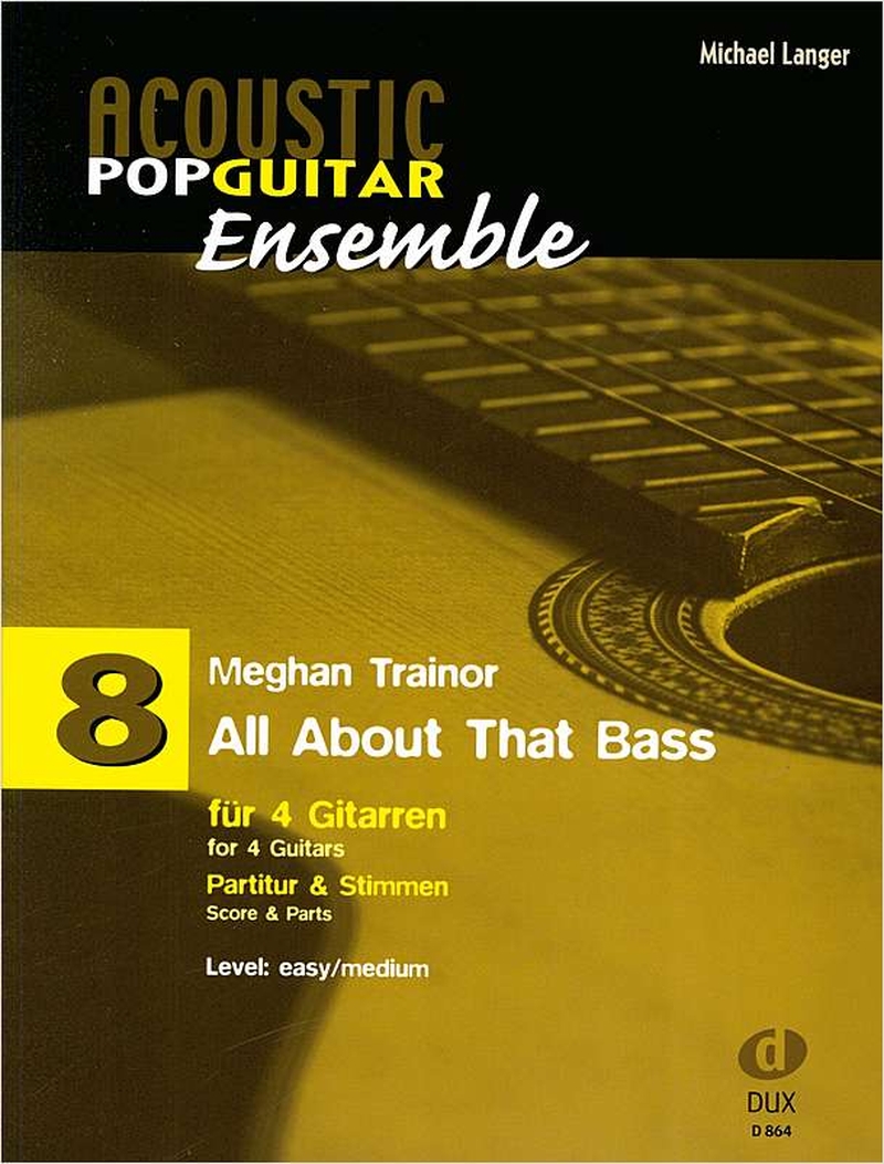Einer der erfolgreichsten Hits des Jahres 2014 in einem Arrangement für vier Gitarren. In ihrem Lied „All About That Bass“ vermischte die US-amerikanische Sängerin Meghan Trainor Einflüsse aus dem mehrstimmigen Doo-Wop-Gesangstil der 1950er- bzw. 1960er-Jahre mit Elementen aus Rhythm & Blues, Hip-Hop und Country. „All About That Bass“ klingt wie ein alter Rock ’n’ Roll-Klassiker und ist trotzdem ein aktueller Pophit – eine großartige Möglichkeit, alte Rock ’n’ Roll-Gitarrenriffs zu entstauben! Gitarre 1 und 2 wechseln sich in der Melodieführung ab, Gitarre 3 hat Begleitfunktion und das prägnante Bass-Riff („All About That Bass“) verbleibt im ganzen Stück bei Gitarre 4 und bildet die Grundlage für das Arrangement.