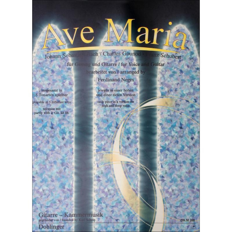 Die beiden berühmten Versionen des "Ave Maria", jeweils tief und hoch, mit Kapodaster insgesamt in 5 Tonarten spielbar (teilweise 2. Gitarre ad libitum).