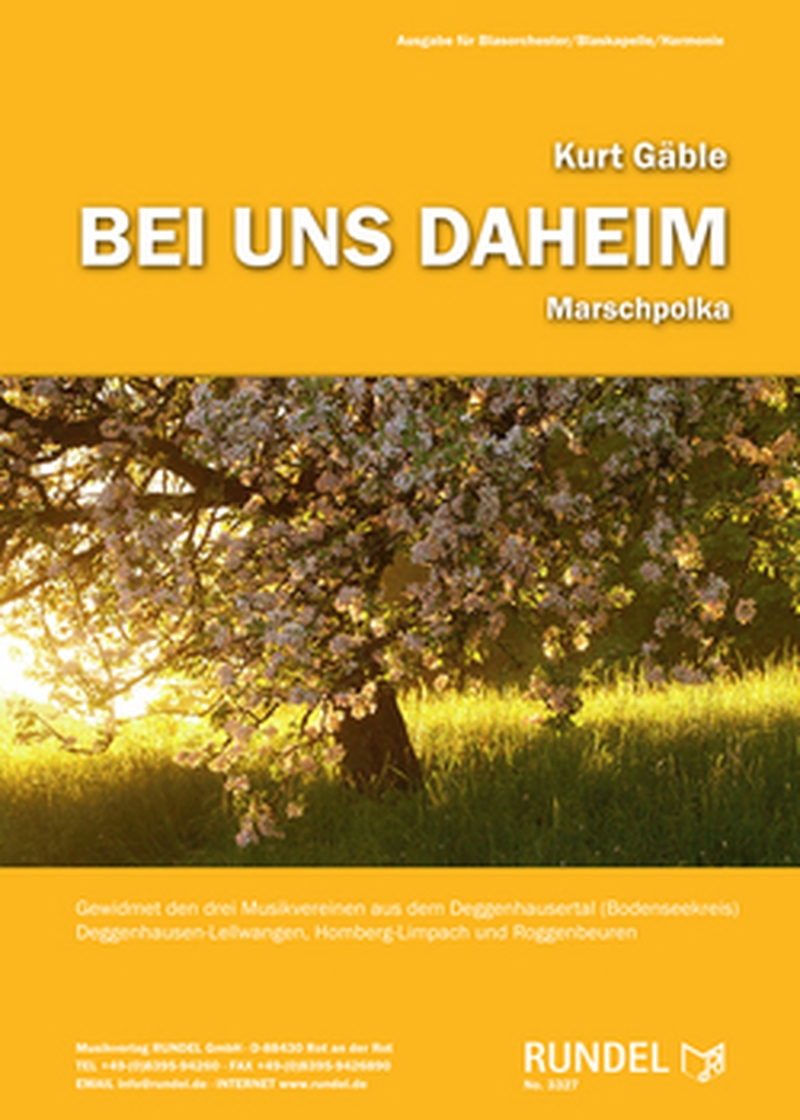 Die Marschpolka „Bei uns daheim“ entstand für die Musikvereine Deggenhausen-Lellwangen, Homberg-Limpach und Roggenbeuren. Die gemeinsame Heimat der drei Vereine ist das Deggenhausertal im schönen Bodenseekreis (Baden-Württemberg). Der leidenschaftliche Naturmensch, Komponist und Fahrradfahrer Kurt Gäble erkundete die Gegend und ließ sich dabei durch die malerische Landschaft inspirieren. Durch seine Musik macht der Komponist das buchstäbliche „Auf und Ab“ der auch als „Tal der Liebe“ bekannten Region für den Zuhörer spürbar.