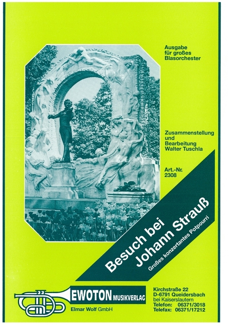 Inhalt: Einzugsmarsch aus "Zigeunerbaron"; Lagunenwalzer; Tritsch-Tratsch-Polka; Morgenblätter (Walzer); Schatzwalzer; Leichtes Blut (Polka); Tik-Tak-Polka. Aus dem reichhaltigen Schaffen des großen Wiener Komponisten hat Walter Tuschla einige der schönsten Kompositionen meisterlich zu einem bunten Melodienstrauß, einem bemerkenswerten Potpourri für alle Gelegenheiten, zusammengetragen.