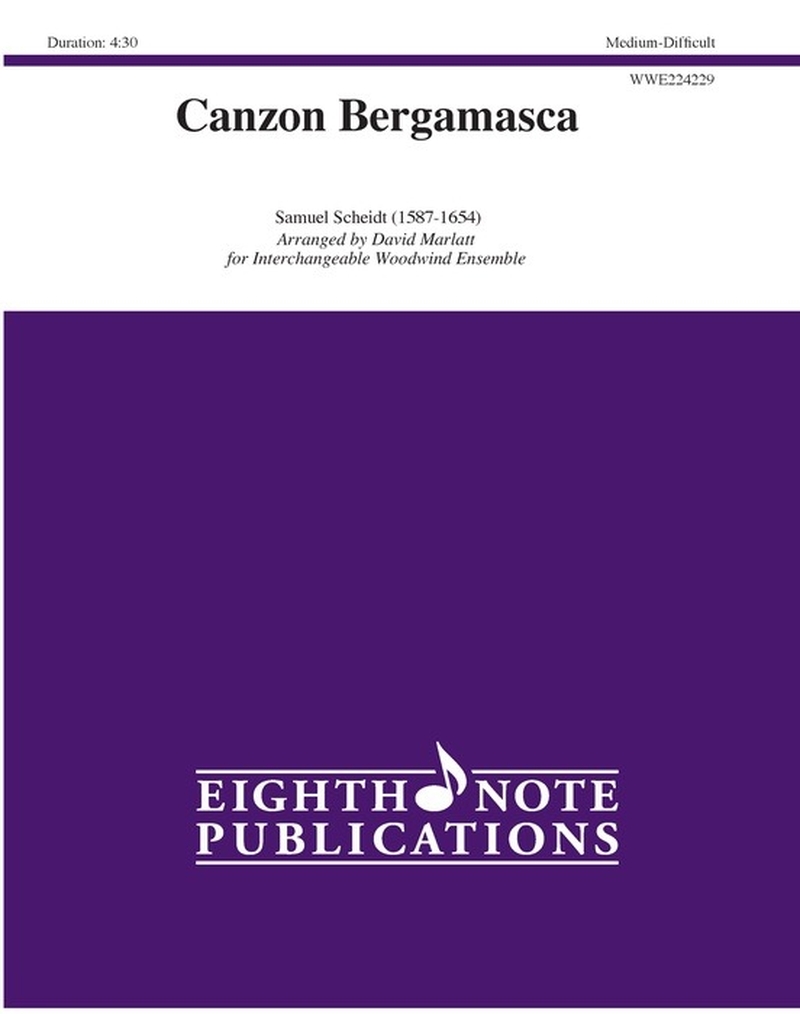 Samuel Scheidt ist in der Welt der Blechbläser vor allem für seine Canzon Bergamasca und Galliard Battaglia bekannt, die von Blechbläserquintetten auf der ganzen Welt gespielt werden. Die neue Ausgabe von David Marlatt für ein austauschbares Holzbläserensemble enthält eine überarbeitete Notation und Artikulationselemente, die dieses klassische Stück einer neuen Generation von Spielern und Zuhörern näher bringt.