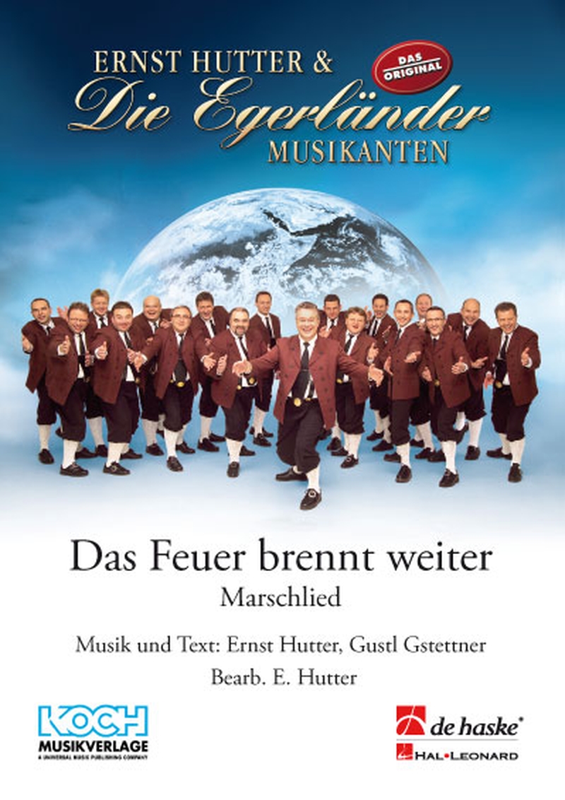 Die Komposition Das Feuer brennt weiter war der Themenmarsch zur Jubiläumstournee 2006 „50 Jahre Ernst Mosch - Seine Musik lebt weiter “.  Der Text von Ernst Hutter und Gustl Gstettner, dem langjährigen Texter von Ernst Mosch, bezieht sich auf die Egerländer Musikanten und deren enge Beziehung zu ihrem ehemaligen Leiter. Der zweite Leitsatz der Jubiläumstour lautete: „Tradition bewahren ist nicht die Anbetung der Asche, sondern die Weitergabe des Feuers...” Dieses musikalische Feuer, das Ernst Mosch in Generationen von Musikern entfacht hat, geben heute sein Nachfolger und Die Egerländer Musikanten mit viel Erfolg weiter. Auch in dieser Hinsicht sind sie Vorbilder für alle Musiker und Musikkapellen.  So ist Das Feuer brennt weiter ein Marsch, der in keinem Repertoire von Kapellen, die sich in irgendeiner Form mit Ernst Mosch oder den Egerländern verbunden fühlen, fehlen darf.  Die fett gedruckten Stimmen in der Partitur entsprechen der Originalbesetzung von Ernst Hutter & Die Egerländer Musikanten. Das Werk ist bereits in dieser Besetzung spielbar. Um auch Blasorchestern die Möglichkeit zu bieten, dieses Werk zu spielen, sind in dieser Ausgabe weitere Stimmen zur Vervollständigung der Blasorchester-Besetzung mitgeliefert.