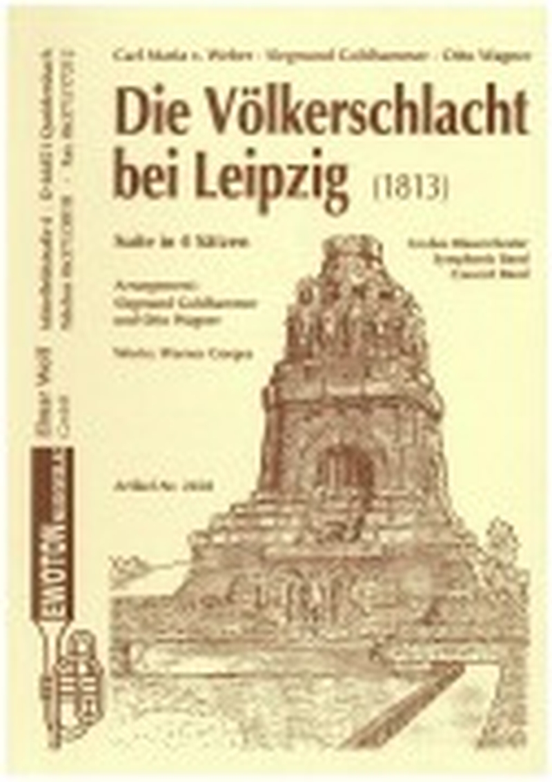 1.Satz: Signal - Einleitung - Melodram - Tutti; 2.Satz: Aufzug - Zwischenspiel - Die Schlacht; 3.Satz: Vor den Toren; 4.Satz: Finale. Das Werk beschreibt die Ereignisse des Jahres 1813, in welchem die "Grande Armee" Napoleons vor den Toren von Leipzig eine entscheidende Niederlage gegen die verbündeten Truppen Preußens, Österreichs, Schwedens und Rußlands erlitt. Die Eigenständigkeit der einzelnen Sätze ermöglicht auch eine teilweise Wiedergabe dieser literarisch hochwertigen Komposition. Bei Aufführung des Gesamtwerkes kann zum besseren Verständnis der historischen Zusammenhänge ein Ansager eingesetzt werden. Textblatt liegt bei. Inkl. Orchesterpartitur.