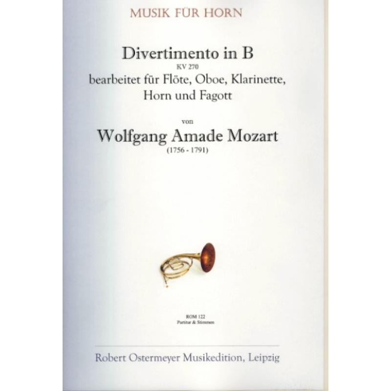 1777 entstand dieses Divertimento in B in Salzburg. Die originale Besetzung war für 2 Oboen, 2 Hörner  und 2 Fagotte.