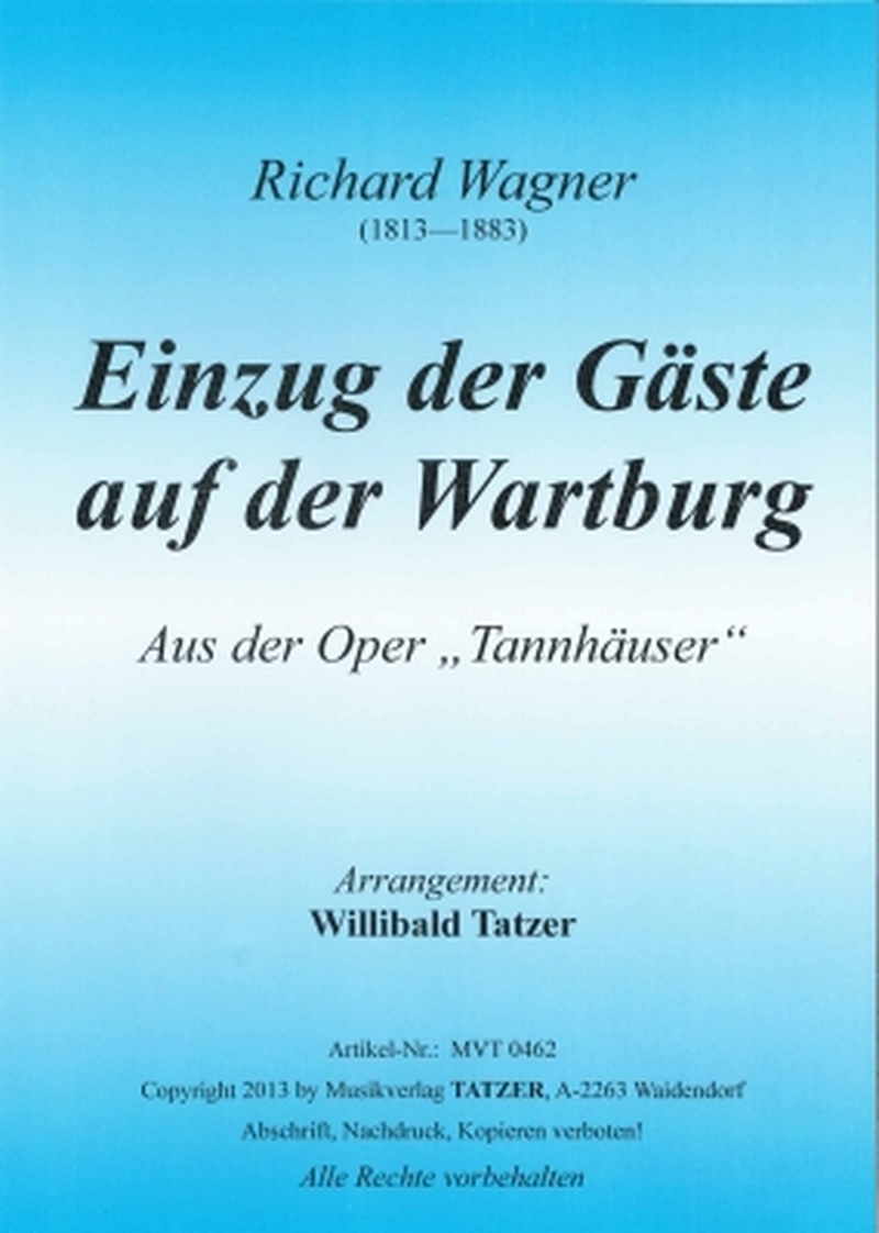 Ausschließlich der Sinnlichkeit geweiht ist die Welt der Venus im Inneren ihres Berges. Tannhäuser, des Genusses zusehends überdrüssig, möchte zurück in sein einstiges Leben auf der Erde. Venus versucht, ihren Ritter zum Bleiben zu bewegen, und prophezeit, dass die Menschen Tannhäuser sein Verweilen bei der heidnischen Göttin der Liebe nie verzeihen würden. Tannhäuser jedoch bleibt bei seinem Entschluss. Bei der Anrufung der Jungfrau Maria versinkt die Welt der Venus, und Tannhäuser sieht sich in ein liebliches Waldtal in Thüringen am Fuße der Wartburg versetzt. Er versöhnt sich mit den Rittern, die er einst verlassen hat, und will an einem Sängerfest, das auf den nächsten Tag bestimmt ist, teilnehmen, um das Herz und die Hand Elisabeths, der Nicht des Landgrafen, zu gewinnen. Den Einzug der Ritter mit ihren Frauen, die gekommen sind, um den Wettstreit der Minnesänger beizuwohnen, hat Wagner in gewohnt großem Stil musikalisch umgesetzt, die vorliegende Fassung für Großes Blasorchester hält sich an das Original.