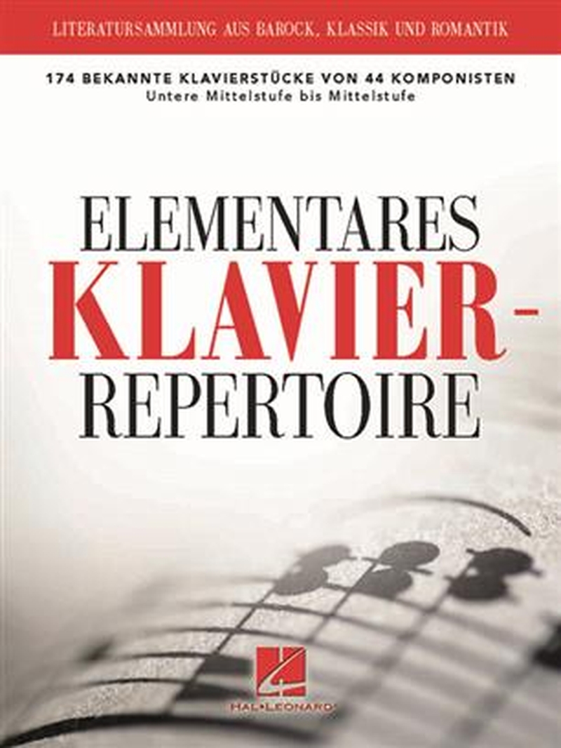 Elementares Klavierrepertoire - das ist eine 328 Seiten starke Literatursammlung aus Barock, Klassik und Romantik, die sich an Klavierschüler von der unteren Mittelstufe bis zur Mittelstufe richtet. Die Ausgabe umfasst 174 bekannte Originalwerke von 44 Komponisten, darunter Bach, Beethoven, Burgmüller, Chopin, Clementi, Heller, Mozart, Scarlatti, Schumann und viele mehr. Die sorgfältig redigierten, gut lesbaren Notentexte sowie die durchgehende Bezeichnung mit Fingersätzen sorgen für eine ideale Nutzbarkeit dieses Bandes im Klavierunterricht.