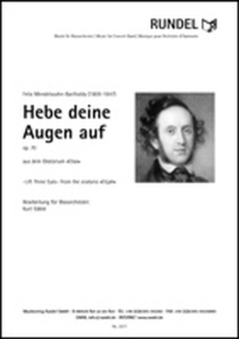 Der »Elias« op.70 von Felix Mendelssohn-Bartholdy besteht aus 2 Teilen mit insgesamt 42 Nummern. Im zweiten Teil unter der Nummer 28 erklingt ein Terzett für 3 Frauenstimmen mit dem Titel „Hebe Deine Augen auf“. Das auch als „Engelsterzett“ berühmt gewordene Stück hat Kurt Gäble zu einer sehr wirkungsvollen Ausgabe für gemischten Chor und Blasorchester ausgearbeitet.