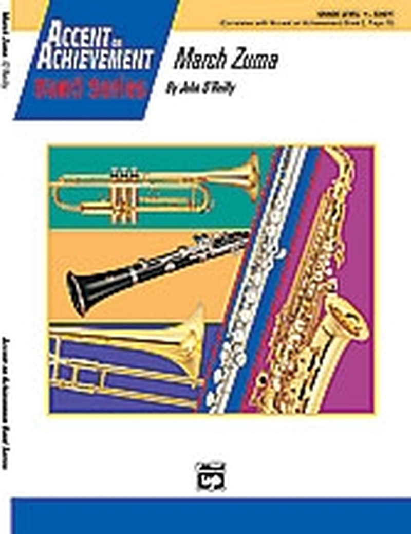 Introduce your band to the natural minor tonality and a variety of sixteenth-note rhythmic patterns with this fresh sounding concert march that correlates with Accent on Achievement, Book 2, page 15. Your low brass section will love being featured on the melody in the trio section, and snare drummers get to show off their 5- and 9-stroke rolls.