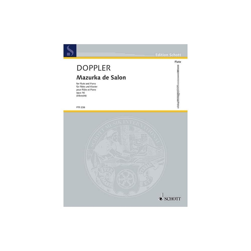 "Mazurka de Salon" für Flöte und Klavier ist mit ihren reizvollen, elegischen wie virtuosen Passagen ein abwechslungsreiches Charakterstück, das dank seines gemäßigten Schwierigkeitsgrades schon für ambitionierte Liebhaber eine wesentliche Bereicherung des Spielrepertoires darstellt. Albert Franz Doppler (1821–1883) gehörte mit seinem jüngeren Bruder Carl (1825–1900) zu den berühmtesten Flötisten des 19. Jahrhunderts. Die Virtuosität ihres Duospiels galt als herausragend, und sie begeisterten mit ihren selbst komponierten Werken das Publikum in den europäischen Musikzentren. Die Brüder waren 1842 Mitbegründer der Wiener Philharmoniker. Nach Stationen als Soloflötist an der Bukarester Oper (1835) und im Orchester des ungarischen Nationaltheaters (1841) zog es Franz Doppler zurück nach Wien. Dort wirkte er als Soloflötist und Dirigent am k. u. k. Hofoperntheater und wurde 1865 zum Professor am Konservatorium Wien ernannt. Vom Kaiser 1881 mit dem Franz-Joseph-Orden dekoriert, verstarb er 1883 in Baden bei Wien.