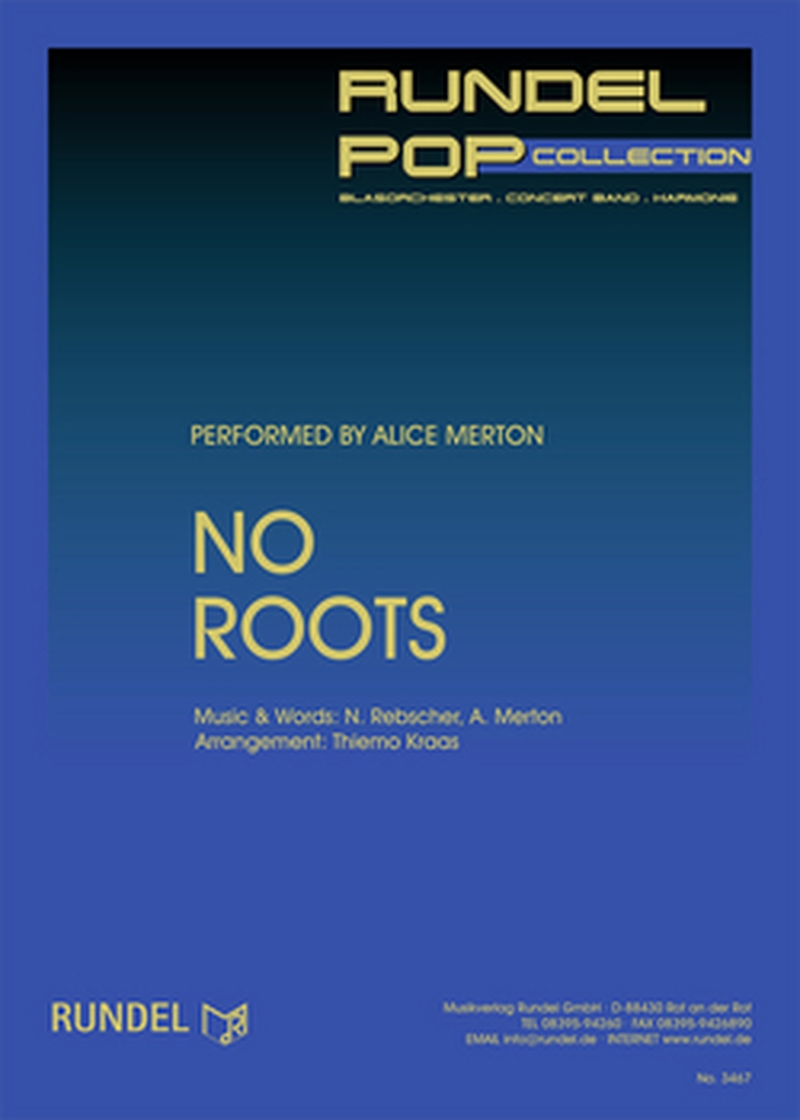 Die deutsch-britische Popmusikerin Alice Merton landete mit ihrer beatstarken Debüt-Single "No Roots" (Keine Wurzeln) einen echten Hit und stürmte zunächst die europäischen Charts, bevor sie auch die Hitlisten der USA eroberte. Die Tochter eines Iren und einer Deutschen ist seit ihrer Kindheit eine echte Weltenbummlerin und lebte bereits in Kanada, England und Deutschland. Dieses Nicht-Verwurzelt-Sein machte sie zum Thema ihres Songs "No Roots" und traf mit dem Liedtext, den erdigen Grooves und der eingängigen Melodie den Zeitgeist ihrer Generation. Thiemo Kraas hat eine klangstarke Instrumentalfassung für Blasorchester geschaffen und dabei die musikalischen Feinheiten des Ohrwurms eindrucksvoll herausgearbeitet. Dieser mitreißende Funk-Pop-Titel eignet sich sowohl für konzertante als auch für unterhaltende Auftritte.
