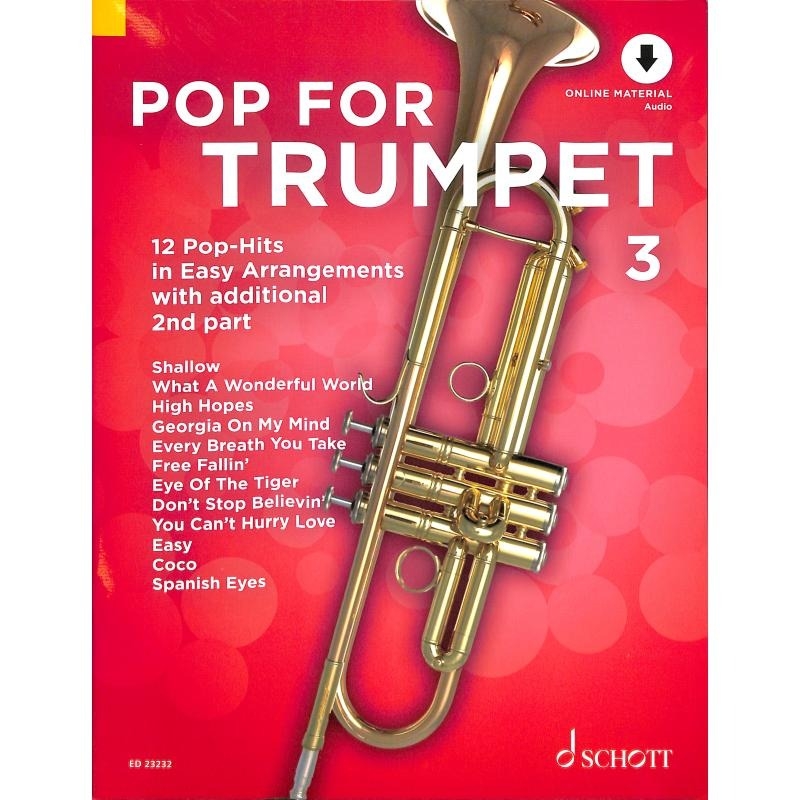 Die schönsten Popsongs, bekannte Filmmelodien und zeitlose Evergreens: Band 3 der Reihe Pop For Trumpet enthält 12 leicht spielbare Arrangements für 1-2 Trompeten mit passenden Playbacks zu jedem Song. Aktuelle Chart-Hits wie Shallow oder High Hopes stehen neben den Pop-Klassikern Every Breath You Take, Easy und You Can’t Hurry Love. Für besondere Trompeten-Highlights sorgen die Titel Coco von der New Yorker Brassband Lucky Chops, Spanish Eyes und Eye Of The Tiger.