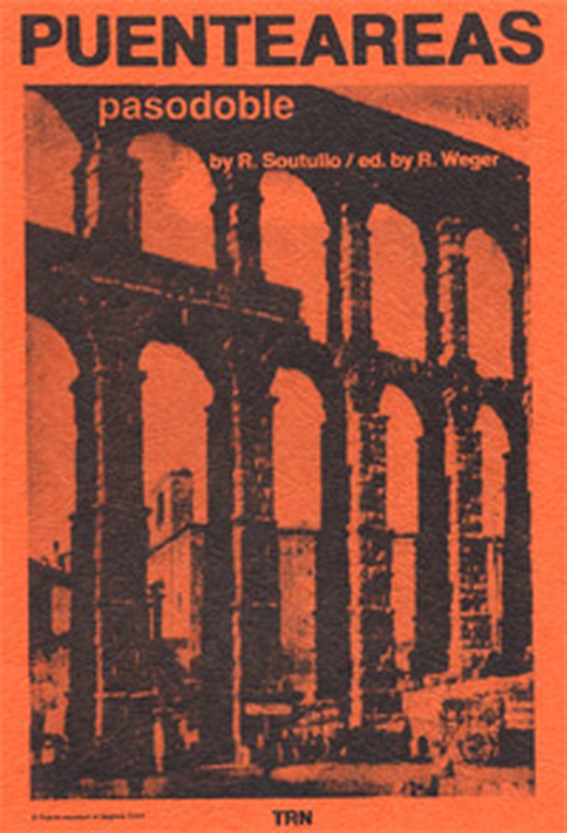 Puenteareas, pasodoble, by Soutillo, edited by Roy Weger. This is another of the great Spanish marches recorded by the Municipal Band of Madrid. Besides the beautiful melodies and counter-melodies we have come to expect from these great marches, the composer has found some gorgeous colors in his voicings. The editor has retained the original intent of the composer in this edition. An exciting march! Thrilling dynamic contrasts!