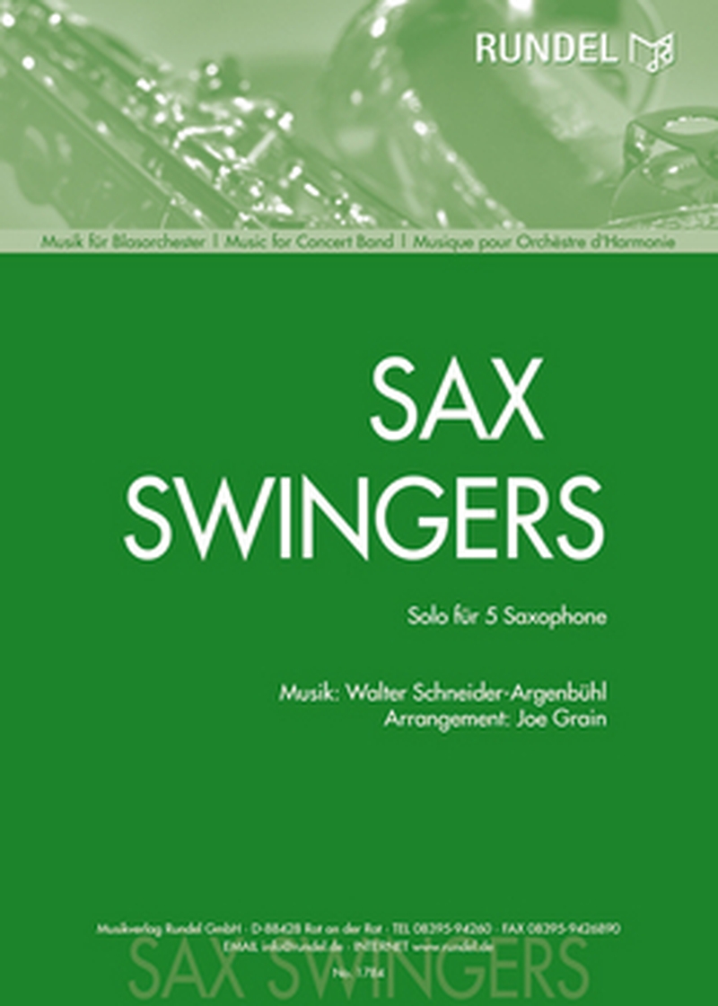 Walter Schneiders "Sax Swingers", arrangiert von Joe Grain, ist eine lässige Swingkomposition für 5 Saxophone und Blasorchester.
