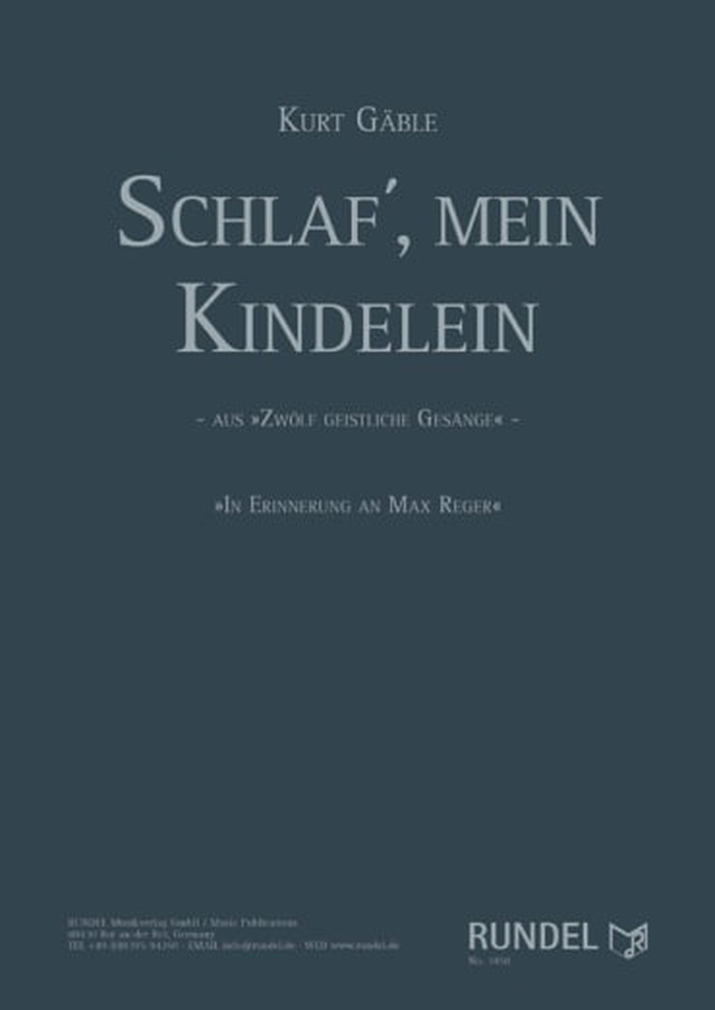 Das Schaffen des Komponisten Max Reger (1873-1916) ist vielfältig. Er schrieb Werke für Orgel, Harmonium, Klavier, Violine, Orchester, Soloinstrumente mit Orchester, Kammermusik und Vokalwerke. Zu letzteren gehört die im Jahr 1900 entstandene und veröffentlichte Sammlung „Zwölf deutsche geistliche Gesänge“. Das hierin enthaltene Wiegenlied „SCHLAF’, MEIN KINDELEIN“ ist als Volksliedsatz im Stil von Johannes Brahms gehalten und erzielt vor allem aufgrund seiner Schlichtheit eine sehr berührende Wirkung. Der deutsche Komponist, Dirigent und Arrangeur Kurt Gäble hat sich dieser musikalischen Perle angenommen, sie um Vor- und Zwischenspiele bereichert und dadurch eine kunstvolle und gleichzeitig praxisnahe Komposition für Blasorchester geschaffen. Der Schlichtheit des Reger’schen Originals ist Gäble bewusst treu geblieben und ebnet damit zahlreichen Orchestern den Weg zu einer tiefgehenden musikalischen Interpretation. Das Arrangement kann sowohl mit als auch ohne vierstimmigen Chor (SATB) zur Aufführung gebracht werden.