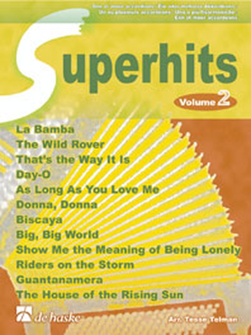 So wie sein Vorgänger 'Superhits Vol.1' enthält auch dieser zweite Band nur bekannte Hits, die für eines oder für mehrere Akkordeons arrangiert worden sind. Inhalt: La Bamba; The Wild Rover; That´s the Way It Is; Day-O; As Long As You Love Me; Donna, Donna; Biscaya; Big, Big World; Show Me The Meaning Of Being Lonely; Riders on the Storm; Guantanamera; The House of the Rising Sun.