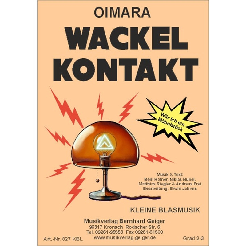 Direktion in C 1. Klarinette in B 2. Klarinette in B 1. Alt-Saxophon in Es 1. Tenor-Saxophon in B 1. Trompete / 1. Flügelhorn in B 2. Trompete / 2. Flügelhorn in B (3. Trompete in B) 1. Tenorhorn in B 2. Tenorhorn in B Bariton in C Bariton in B 1. Posaune in C + 1. Posaune in B 2. Posaune in C + 2. Posaune in B 2. Bass in C + Bass in B E-Bass Gitarre Klavier / Keyboard / Gesang Schlagzeug Text